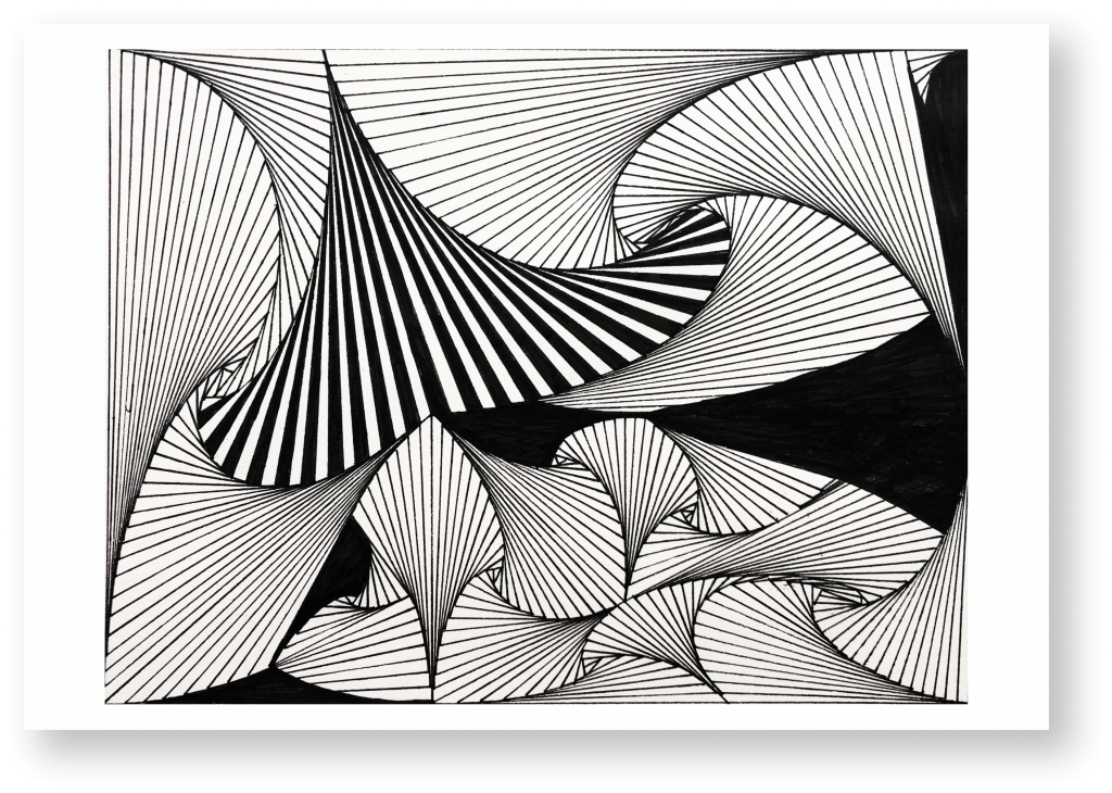 Hand drew non-figurative composition through repetitive design concept, named “Dancing Lines” | Black Micro Pen & Ruler