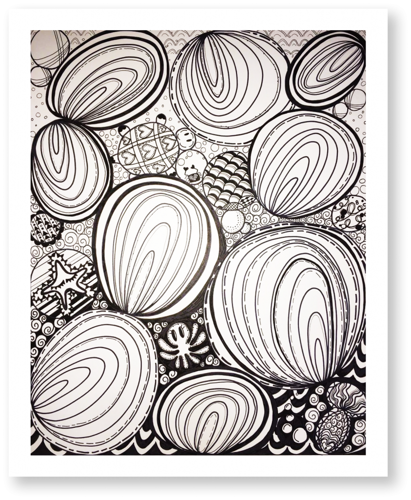 Created a non-representational line drawing to communicate the principles of design of pattern, contrast, proportion, and movement, named “Marvelous Ocean in Love”, included in Clark College Archer Gallery Art Student Annual exhibition 2020 | Micron & Sharpie Pens