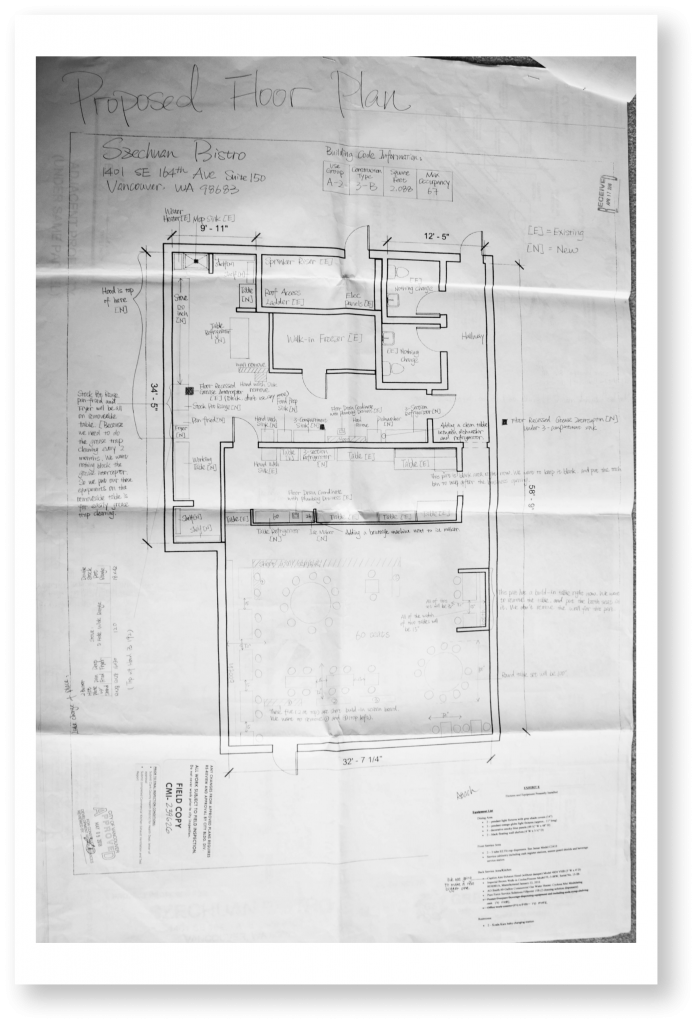 Produced and designed a municipal approved floor plan used for the restaurant interior construction | Pencil & Ruler