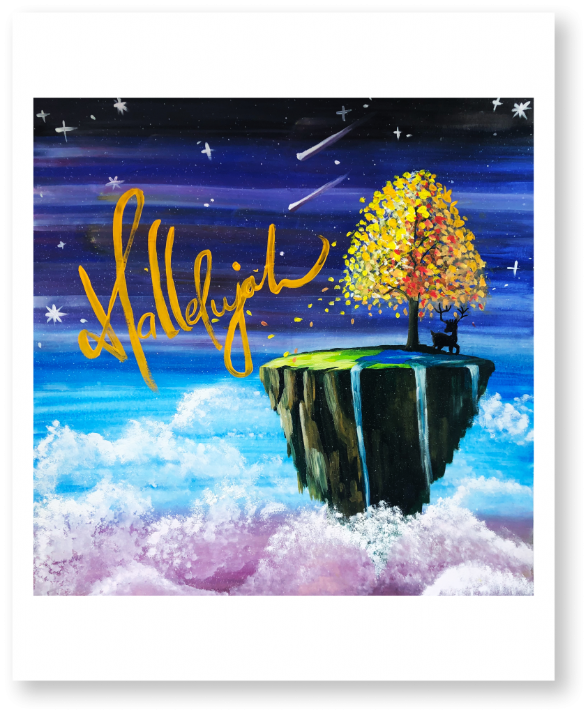 Designed a fictional album cover in a nice range of values and harmonious color palettes by using the idea of floating island | Gouache